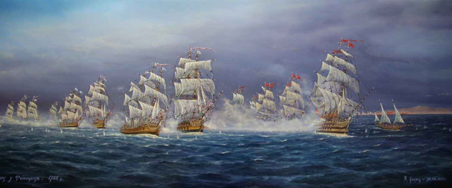 В.В. Косов. «Сражение у Фидониси». Это сражение, произошедшее в 1788 году, — первая победа Федора Ушакова и русского флота на Черном море, когда Севастопольская эскадра разбила турецкий флот. Фото: Wikimedia Commons