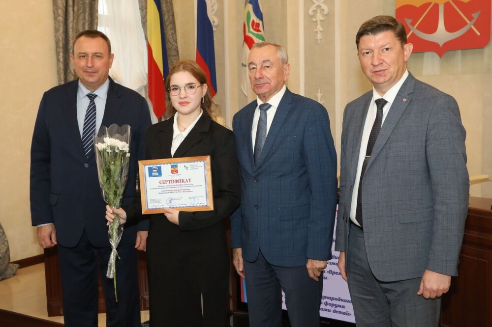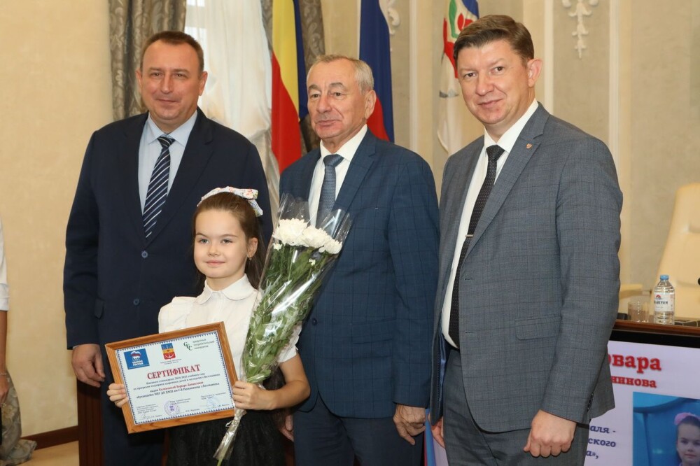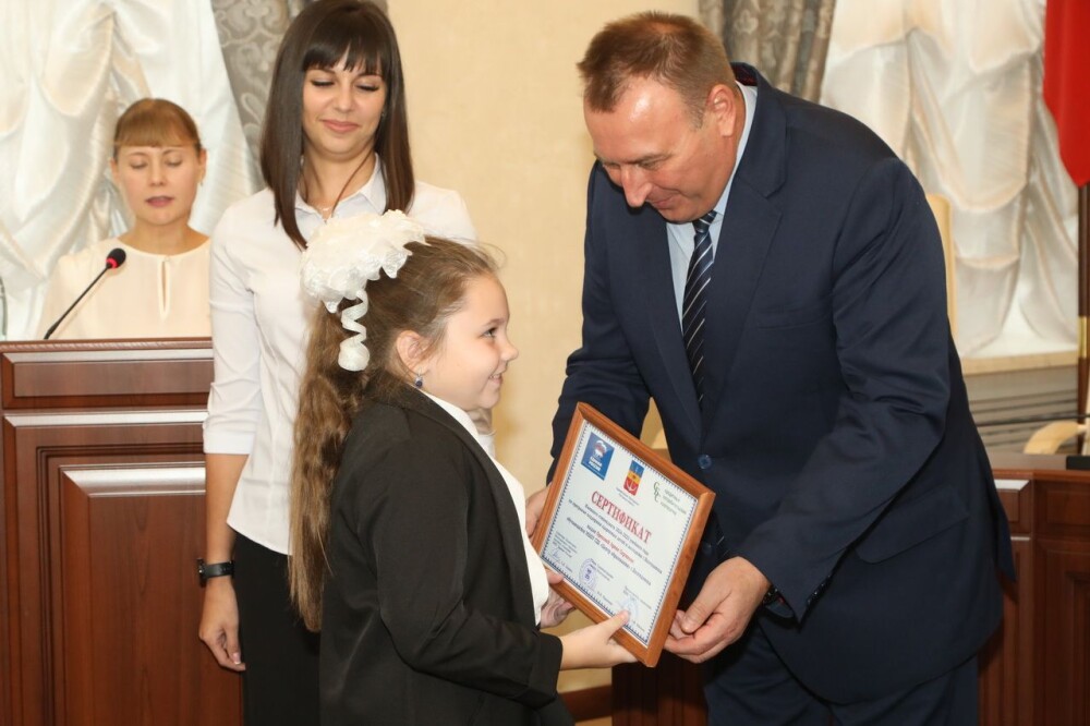 15 одарённым детям Волгодонска были вручены сертификаты на именные стипендии Кредитного потребительского кооператива «Союз банковских служащих». На торжественной церемонии собравшихся поприветствовал глава Администрации города Юрий Мариненко: «Я абсолютно твердо уверен в том, что сегодняшние достижения – далеко не последние наших талантливых детей, в будущем их ждут еще большие победы. Я в этом абсолютно уверен, потому что перед нами дети, которые привыкли решать взрослые задачи с юного возраста. Каждый из них помечен искрой божьей, каждый талантлив в своем направлении. Важно не зарывать этот талант в землю. Развивайтесь, двигайтесь дальше к тем вершинам, которые считаете для себя сейчас недосягаемыми. В процессе пути, вот увидите, они вами покорятся. Удачи вам, успехов.«