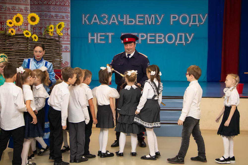 Атаман с радостью одобрил прошение, но прежде решил испытать юных казачат. Дети прошли ряд увлекательных заданий, таких как «Заповеди казаков», «Конь боевой», «Меткий стрелок», «Принеси воду на коромыслах» и «Клубочек». Ребята справились с этими испытаниями блестяще, демонстрируя сплочённость и умение работать в команде. Поддержать первоклассников пришли также ученики старших классов и участники ансамбля «Родная песня», которые исполнили песню «Любо мне», что добавило эмоциональной насыщенности празднику.