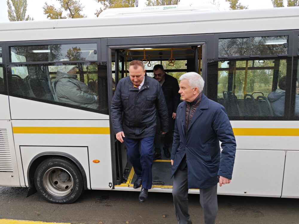 Глава Администрации города Волгодонска Юрий Мариненко, заместитель главы по городскому хозяйству Андрей Журавлёв и директора МУП «ГПТ» Валерий Юмаев утром проехали на новом автобусе.