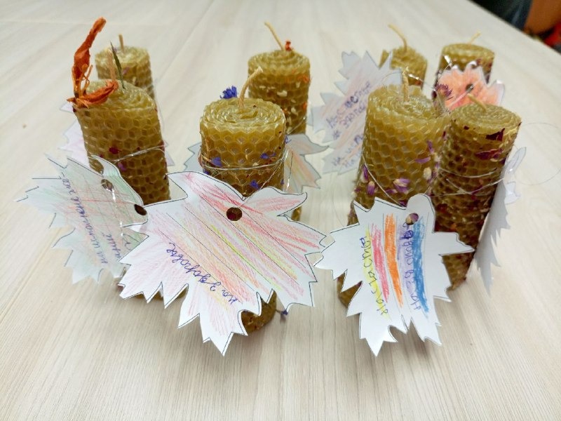 Участники акции мастерили свечи из натуральной вощины и украшали его сухоцветами. Как отмечают специалисты, свечи положительно влияют на нервную и дыхательную системы организма благодаря особенным лечебным свойствам натурального пчелиного воска.