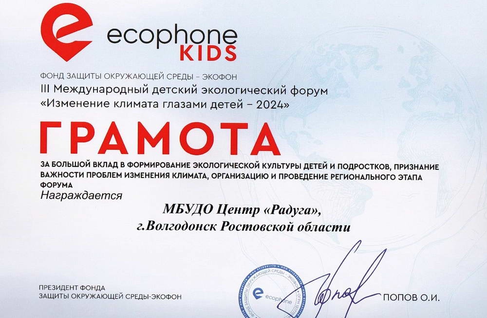 Церемония награждения, состоявшаяся в рамках III Международного детского экологического форума «Изменение климата глазами детей», стала значимым событием для участников из Волгодонска. В этом важном мероприятии принимали участие учащиеся МБУДО «Центр «Радуга» г. Волгодонска: Эшова Валерия, Макарова Анна, Соловьева Дарина, а также их педагог дополнительного образования Джепко Е.Н. Это событие собрало молодых экологов, которые проявили инициативу и креативность в изучении актуальных вопросов изменения климата.