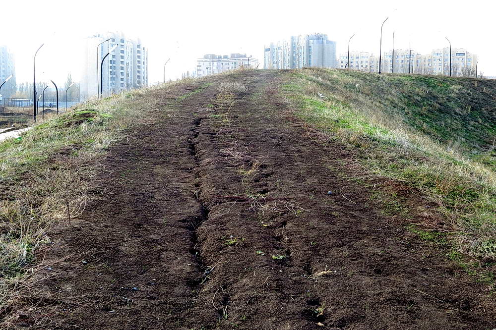 Некоторые элементы парка уже были реализованы, однако, к сожалению, другие объекты начинают разрушаться. Например, земляная горка со смотровой площадкой, которая должна была стать изюминкой этого пространства, сейчас находится в плачевном состоянии. Склон горки, подвергающийся воздействию дождевой воды, постепенно смывается. Это говорит о недостаточной подготовке и отсутствии должного контроля со стороны ответственных организаций.