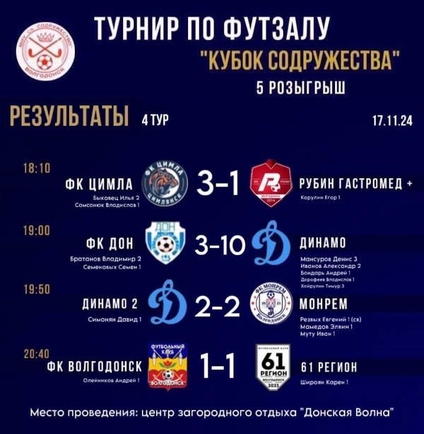 24 ноября, в Центре «Донская Волна» пройдёт V тур Кубка «Содружества» по футзалу.