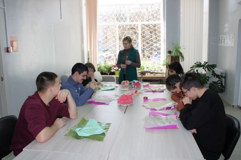 В преддверии Дня матери в социально-реабилитационном отделении дневного пребывания Центра социального обслуживания № 1 Волгодонска состоялся мастер-класс для молодых получателей социальных услуг по изготовлению сладких букетов «Шоколадные цветы для мамы».