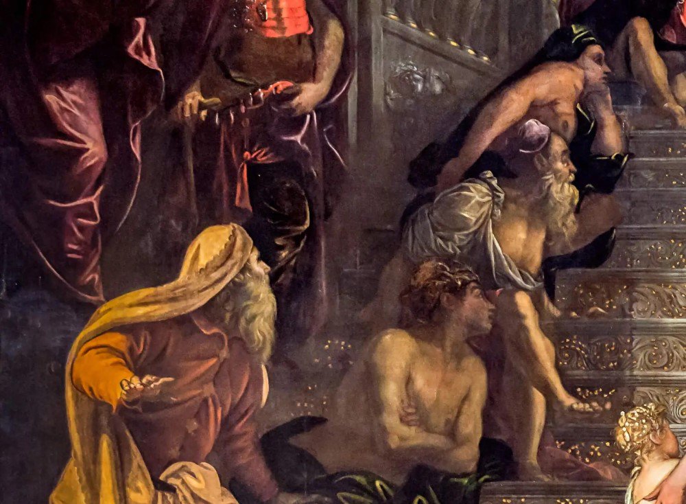 «Введение Марии во храм», фрагмент «Страждущие». Якопо Тинторетто. 1555 г.
