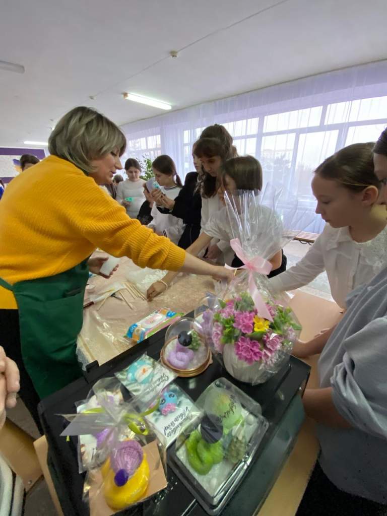 По-семейному тепло и радостно прошёл праздник мам в школе № 13 Волгодонска. С любовью и терпением мамы и бабушки учеников, педагоги образовательного учреждения, члены школьного Парламента, преподаватели ВТИТБиД на шести площадках учили мальчишек и девчонок готовить поделки своими руками. Примечательно, что одной из шести мастерских руководила десятиклассница, а другой — её мама. Дети получили мастер-классы по оформлению лент Победы к восьмидесятилетию Великой Отечественной войны, изготовлению ярких мыльных композиций, аппликаций и новогодних игрушек, которые будут украшать Ёлку микрорайона.
