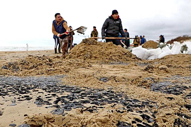 Мазут, вылившийся после крушения двух танкеров в Керченском проливе 15 декабря, все интенсивнее «выплескивается» на берег: по скромным подсчетам, зона загрязнения достигает 49 километров — от поселка Веселовка в Темрюкском районе до станицы Благовещенской в Анапе. На курортные пляжи стянули огромный десант добровольцев и волонтеров, участвующих в ликвидации последствий разлива. Накануне к работам привлекли почти шесть тысяч человек и 255 единиц техники. Как проходит масштабная операция, пишет наш информационный партнёр «Российская газета».