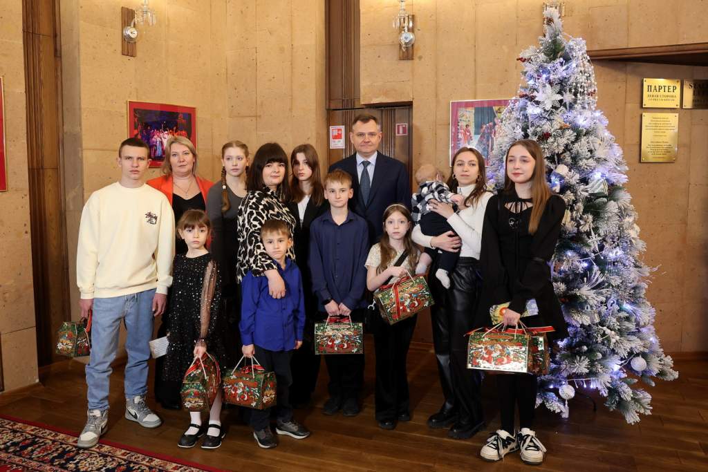 Просьбы поощрить активных и талантливых мальчиков и девочек, чьи отцы выполняют боевые задачи, поступили к главе региона в ходе предновогоднего интерактивного приёма. Предложение Юрий Слюсарь поддержал, а перед началом спектакля пообщался с ребятами и их мамами, поздравил с наступающими праздниками.