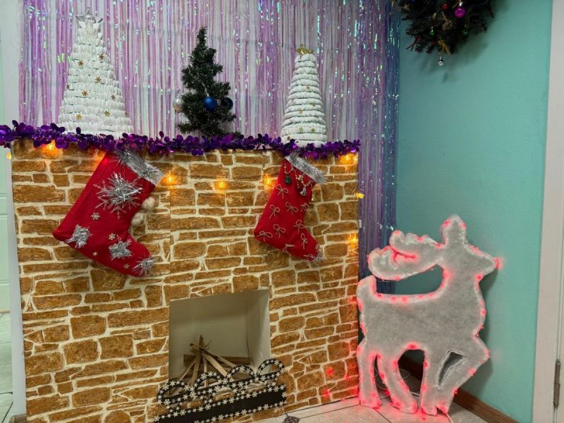 Что такое Новый год без волшебной атмосферы и ярких фотографий на память? В этом году праздничную фотозону в виде уютного камина с украшениями ручной работы люди старшего возраста решили обновить. И создали прекрасный символ зимнего праздника — оленя, украшенного гирляндами и блестками, который словно сошёл со страниц новогодней сказки.