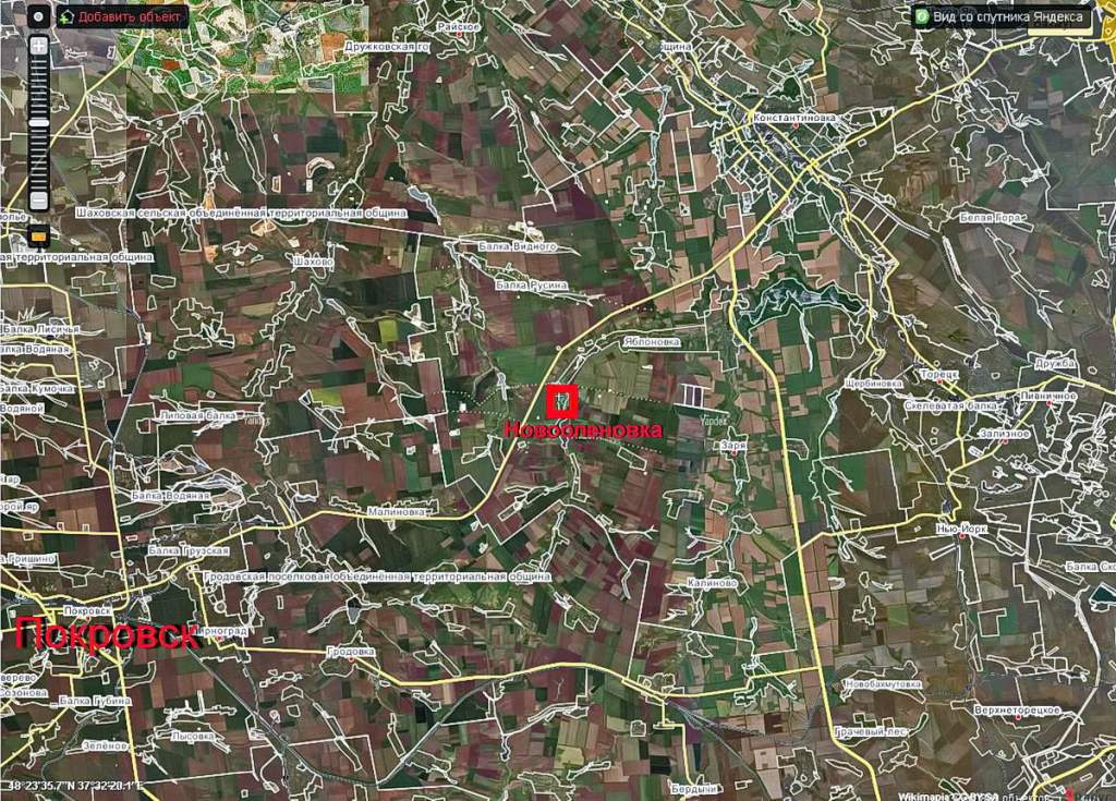 По его словам, Новотроицкое расположено на берегу реки Соленая, вдоль которой выстраивается плацдарм для наступления на Покровск (Красноармейск) с юга.