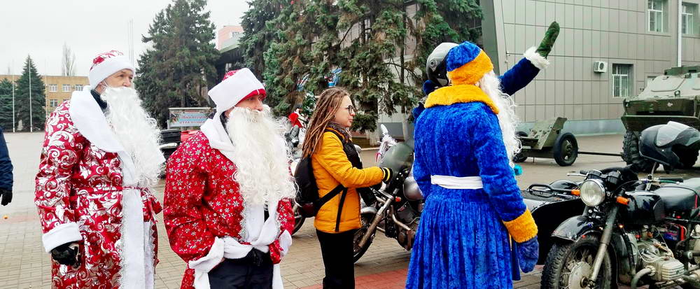 31 декабря, в последний день старого года, члены волгодонского мотоклуба «Free Don» решили порадовать себя и горожан, устроив необычное мероприятие. Переодевшись в костюмы Дедов Морозов, они выехали на своих мотоциклах, создав атмосферу праздника в пасмурный зимний день. Подобная акция байкеров стала уже традиционной. Это мероприятие явилось ярким событием для города, ведь байкеры не только продемонстрировали свои машины, но и принесли радость всем, кто их увидел.