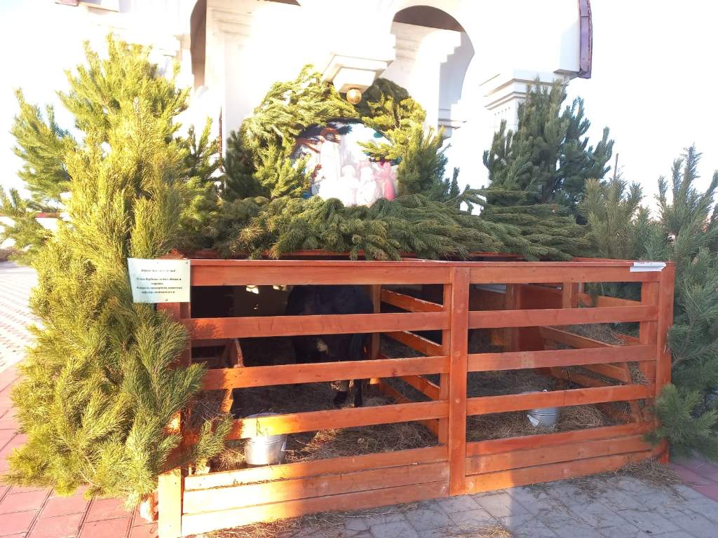 Особое внимание детей приковано к живому рождественскому вертепу. Жители Волгодонска могут увидеть ослицу Вербочку, которая уже участвовала в различных праздниках. Она любит морковь и яблоки, а вот конфетами и печеньем её кормить запрещено. Находятся здесь и ягнята Уголёк и Кнопка, редких пород овец, привезённые из станицы Богоявленской. Несмотря на свои всего четыре месяца, крепыши весят почти по 40 кг.