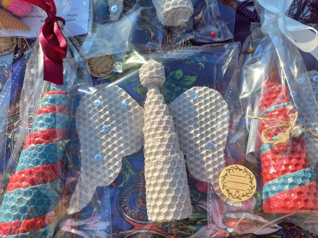 —Не первый год 7 января, в праздник Рождества Христова, владыка Антоний, батюшки и сёстры милосердия приходят к нуждающимся и обездоленным людям, поздравляют и вручают подарки, открытки с тёплыми пожеланиями. А мы, когда планируем очередную ярмарку, стараемся придумать что-то новое. В этот раз изготовили свечи-ангелы, испекли большие пряники-ангелы. Учимся в процессе, как разнообразить наш ассортимент, чтобы он был востребован и дарил людям радость, — сказала Ольга.