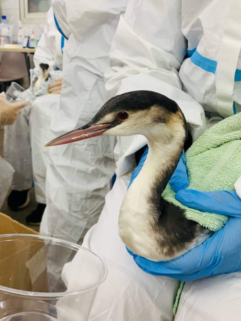 На следующий день Катерина прошла инструктаж и стала работать на мойке птиц. Большинство из них были чомги. Волонтёры называли их просто «ути».