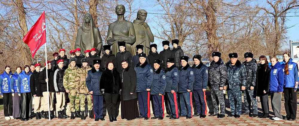 К участникам акции присоединились казаки и дружинники добровольной казачьей дружины Юртового казачьего общества «Романовский юрт», а также юные «ДОНЦЫ», «ЮНАРМЕЙЦЫ» и «Волонтёры Победы». Все они вместе с представителями районных организаций и предприятий возложили алые гвоздики к Вечному огню, символизируя память о павших героях. Гранитные плиты мемориала «Вдовы», на которых выбиты имена героев-земляков, стали местом, где каждый мог отдать дань уважения и вспомнить о тех, кто отдал свою жизнь за освобождение этих земель.