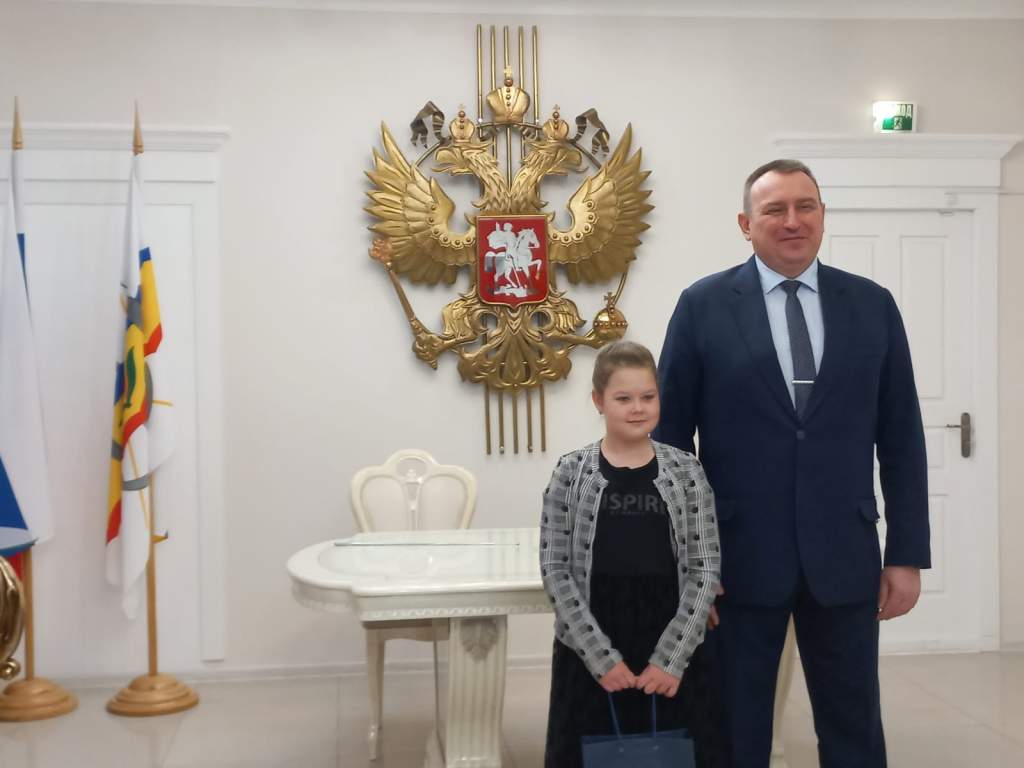 Юрий Мариненко вручил всем детям памятные подарки и билеты на спектакль «Приключения в тридевятом царстве» Волгодонского молодёжного драматического театра. Общее фото участников стало ярким финальным аккордом этого праздничного события.