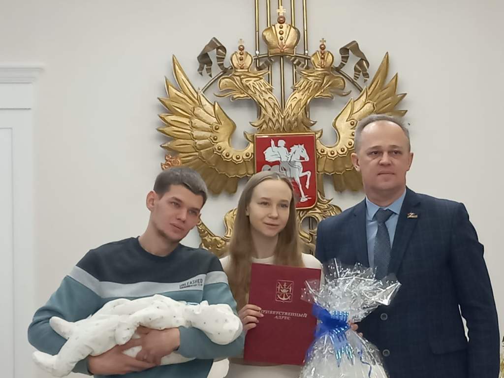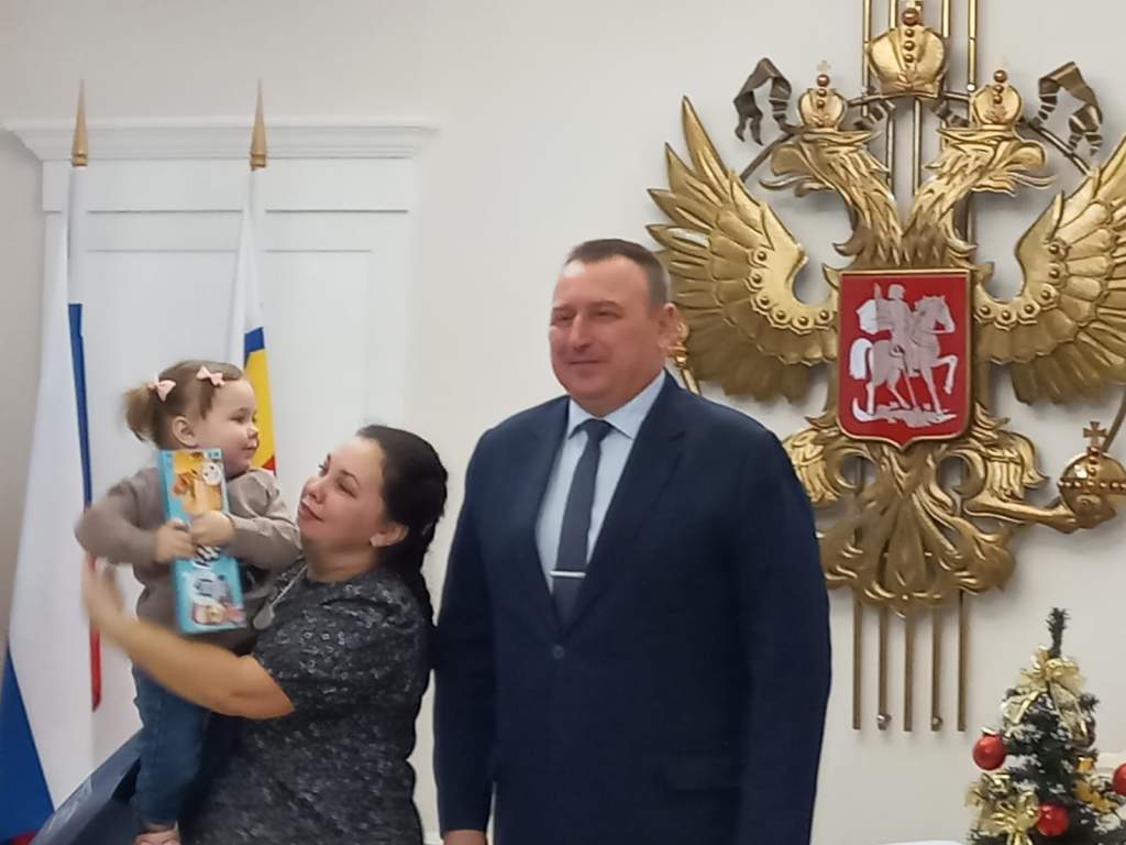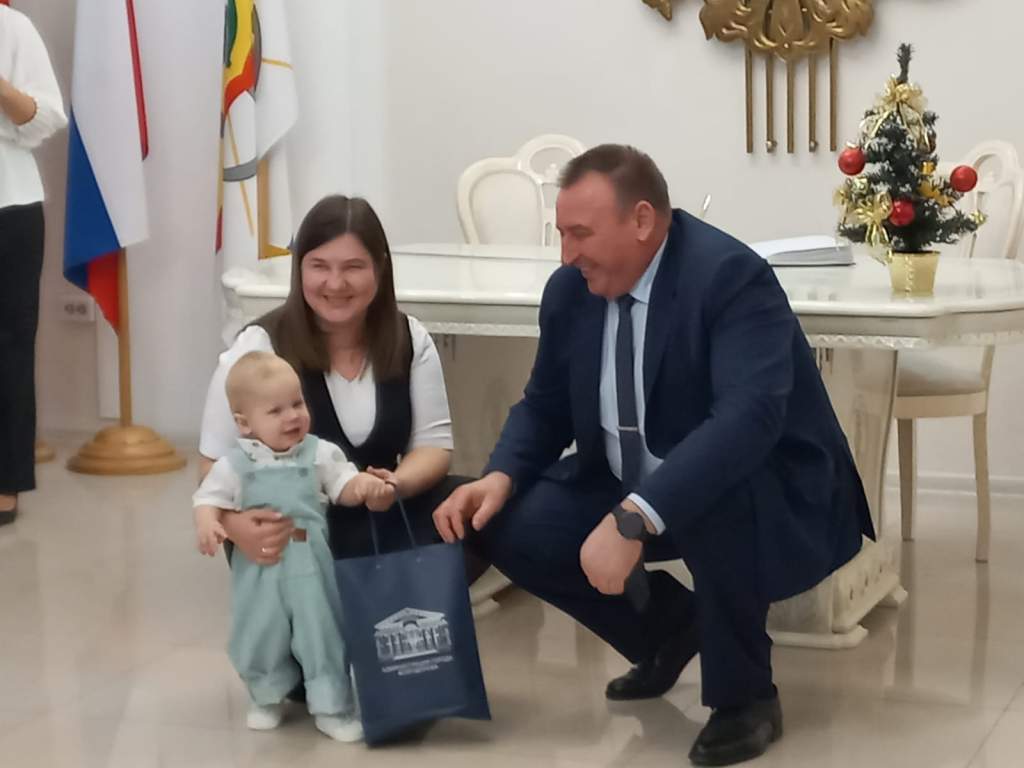 Заместитель председателя Волгодонской городской Думы Игорь Батлуков отметил значимость рождения первенца в юбилейный год для самого молодого города Ростовской области. Он пожелал малышу быть первым во всём и радовать родителей, вручил приветственный адрес и подарок.