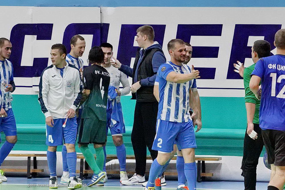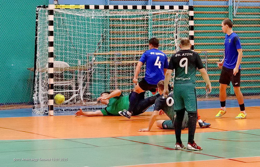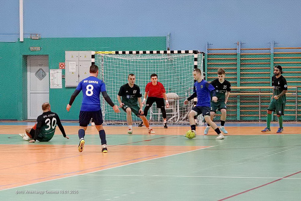 Во втором матче игрового дня встретились команды «Атом» и «Цимла». В первом тайме «Атом» оказался чуть сильнее и удачливее соперников, забив в ворота цимлянской дружины два мяча и пропустив в свои один. Во втором тайме характер игры не изменился. «Атом» на пятой минуте забивает третий гол, а через пять минут, используя ошибку цимлянского вратаря необдуманно вышедшего вперёд, делает счёт комфортным для себя — 4: 1. А на последней минуте Цимла» забивает свой второй мяч -2: 4. Но на итоговый результат игры это уже не повлияло.