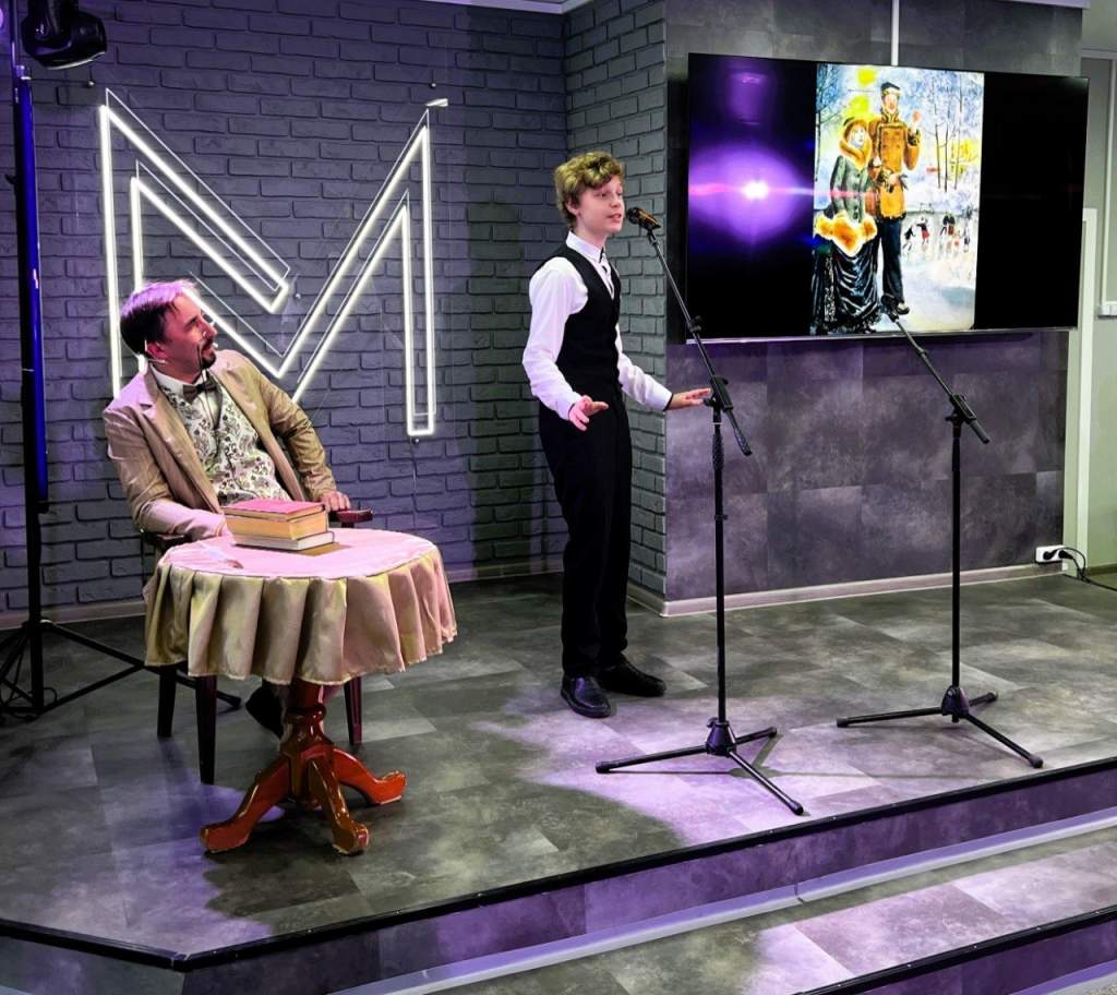 Воспитанники студии эстрадного конферанса «Мастерская слова» ДК представили гостям лучшие отрывки из произведений Антона Чехова. Юные чтецы разного возраста демонстрировали свое мастерство, читая наизусть прозу классика. «Антон Павлович», присутствующий в зале, внимательно слушал выступления и живо реагировал на происходящее, чем вызывал улыбки и оживление среди присутствующих.