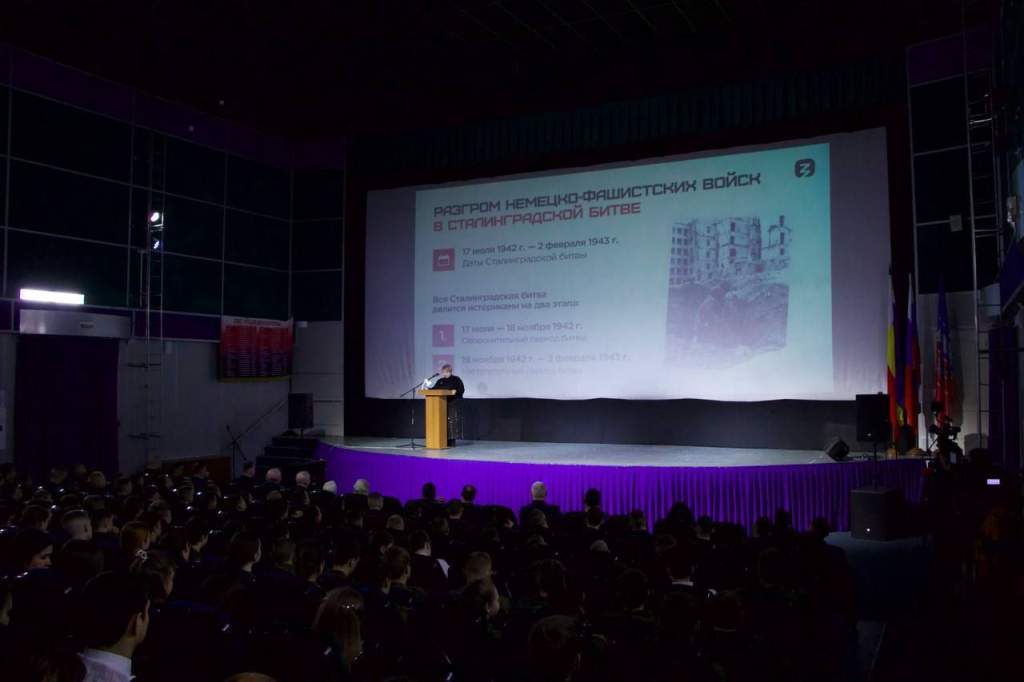 –Память героев почтили в патриотическом центре «Победа», где для молодежи города был организован исторический лекторий об одном из ключевых событий Великой Отечественной войны – Сталинградской битве, о людях, проявивших мужество и героизм, – рассказала министр общего и профессионального образования Ростовской области Тамара Шевченко. – Участие в просветительском мероприятии приняли школьники, активисты «Движения первых», «Юнармии», кадеты, студенты, а также представители добровольческих и патриотических объединений региона.
