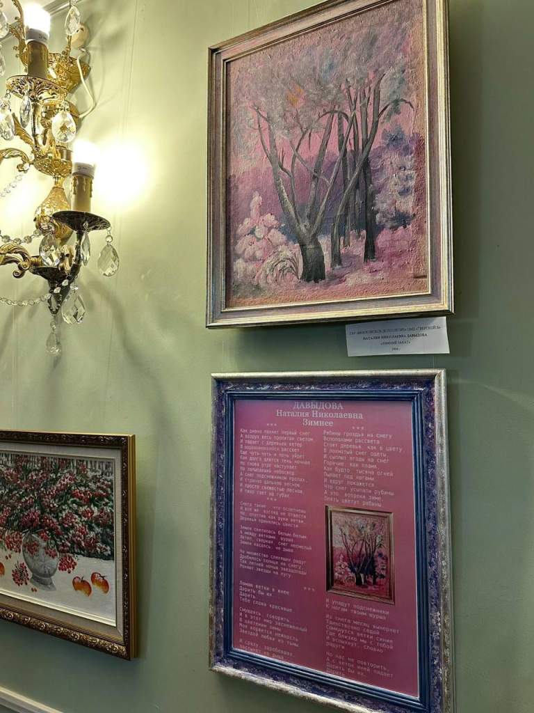 История одного произведения оказалась особенно счастливой. Картина «Зимнее» вместе с подборкой стихов Натальи Давыдовой теперь украшает стены усадьбы Григорьевых-Писемских. В историческом центре столицы это удивительное место. Когда-то в залах усадьбы проходили встречи с великими Федором Тютчевым, Николаем Гоголем, Федором Глинкой и даже Ференцем Листом. Сегодня на выставках можно соприкоснуться с культурными, художественными традициями и открыть новые направления в сфере искусства, моды, эстетики. Усадьба сотрудничает с различными творческими сообществами. Одно из них – столичный Центр активного долголетия, специалистом которого трудится внучка Н.Н. Давыдовой Надежда. А редакция «ВП» узнала об этом от нашего доброго друга, сотрудницы ДК «Октябрь» Надежды Персияновой.