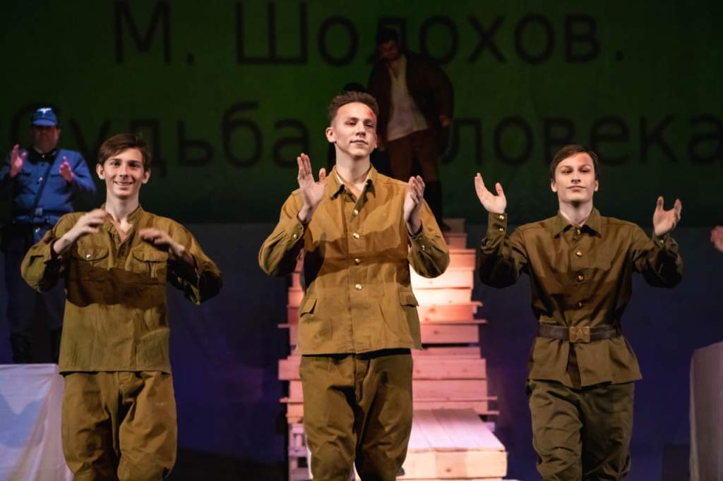 —Есть замечательное правило в нашем народном театре — главное — верить. Если все проникнутся и поверят, абсолютно все станет понятным. Мы готовились тщательно, читали произведения, смотрели фильмы, искали свой путь. Работали с архивами Шолохова, которых, как оказалось, не так много, потому что во время войны многое было утеряно. Наш видеооператор Александр Лянгузов нашел цветную хронику, чтобы спектакль выглядел в гамме единообразно. Мы вырезали много страшных и шокирующих кадров из документальных съёмок концлагерей, но оставили те моменты, которые посчитали необходимыми. Работа над этим была сложной, понимая, что дети будут смотреть.