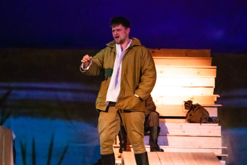 Правнук не только с достоинством нёс его портрет в «Бессмертном полку», но и служил в армии. Актёру театра «Маска. РаД» чуть за двадцать. Его герою, вынесшему войну на своих плечах, за 40. Зал отмечал, что выкладывается Иван на все сто — и во время исполнения песни «Не для меня…», которая рефреном звучит во время спектакля, и во всех перипетиях персонажа, — органично и выразительно ведёт рисунок многогранной роли.
