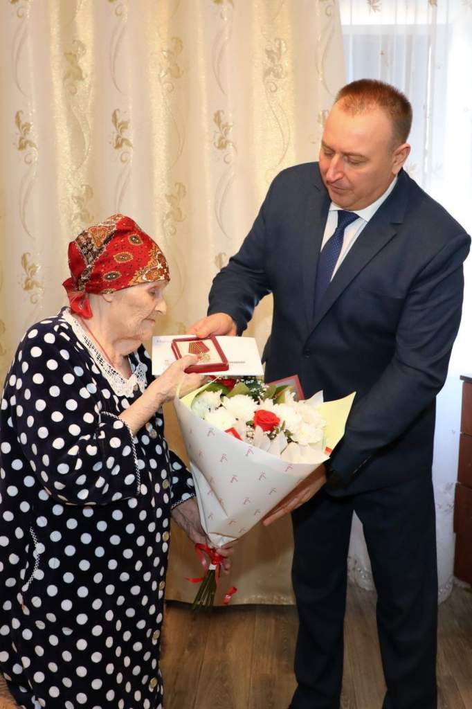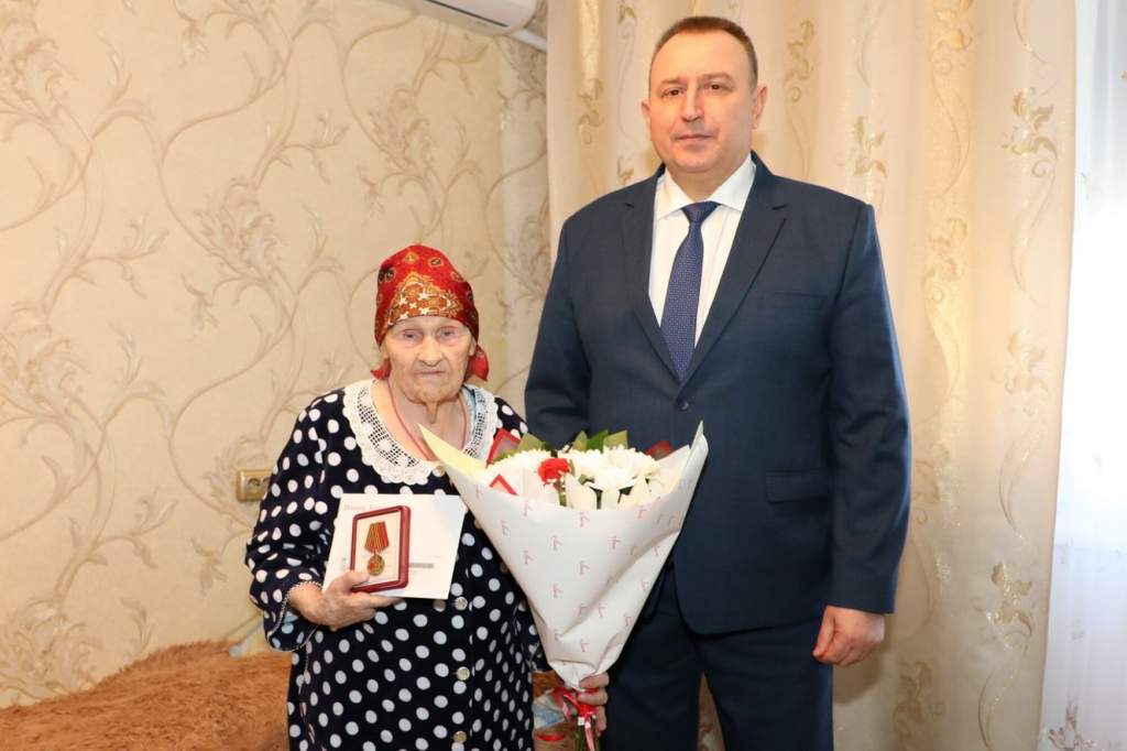 95 лет исполнилось жительнице Волгодонска, труженику тыла и ветерану труда Марии Крячко. 18 февраля, в день её рождения, вместе с сотрудниками Департамента труда и соцразвития её навестил глава Администрации Волгодонска Юрий Мариненко. Поздравил Марию Петровну и вручил юбилейную медаль «80 лет Победы в Великой Отечественной войне 1941-1945 годов».