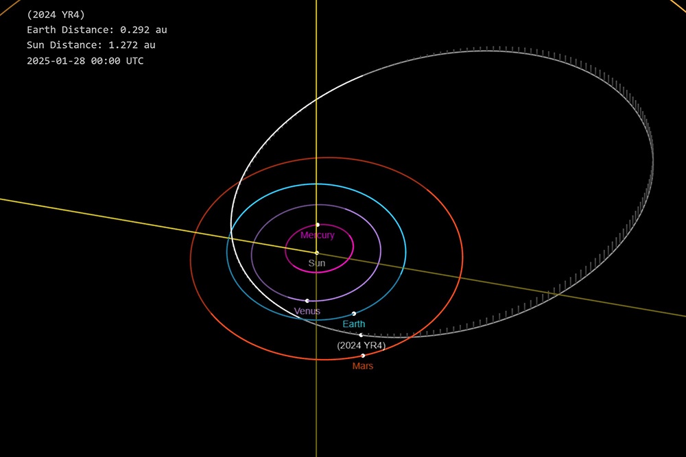 Напомним, что астероид 2024 YR4 обнаружен в конце декабря 2024 года, его диаметр от 40 до 90 метров. Оценка его столкновения с планетой, сделанная специальными службами слежения, постепенно увеличивалась и к 18 февраля 2025 года возросла до 3,1%.