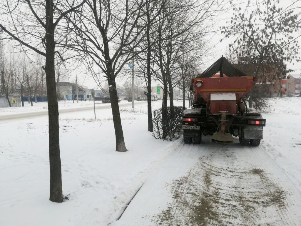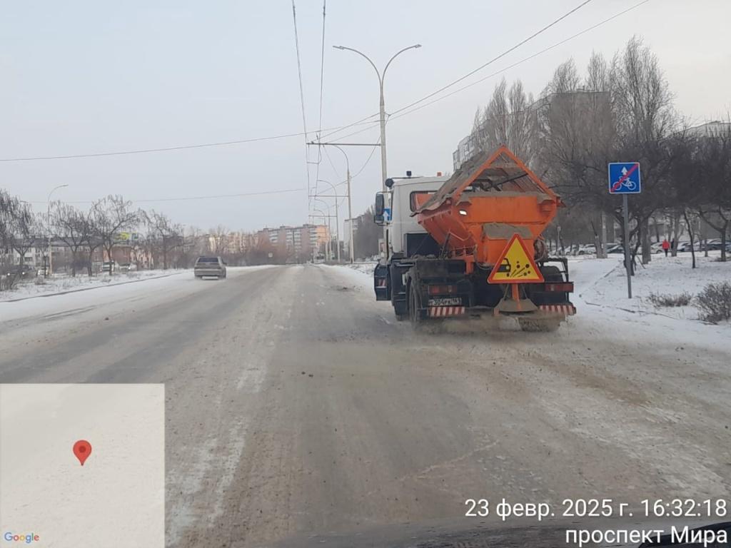 Несмотря на праздник, в рамках контракта по содержанию автомобильных дорог, ООО «Созидатель» посыпала дороги обеих частей города противогололёдной смесью.