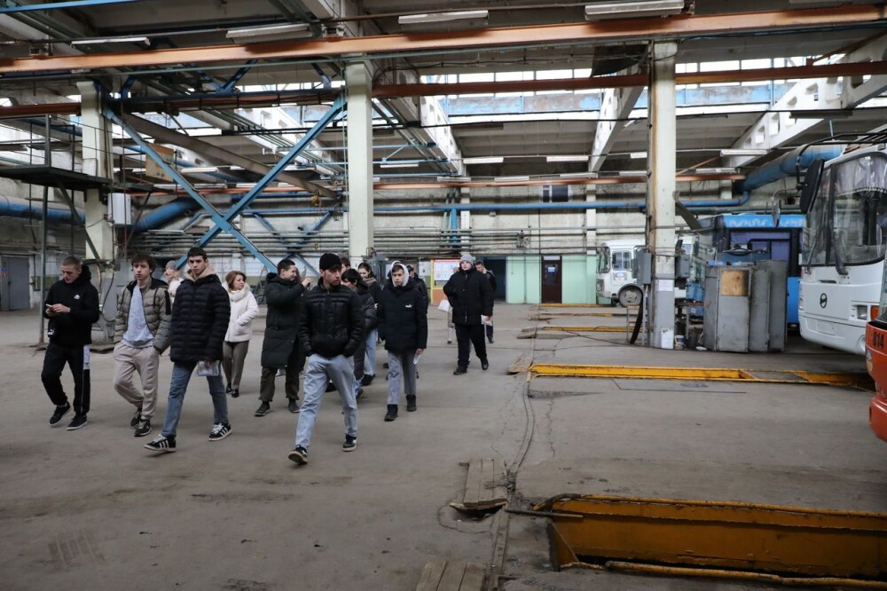 На базе МУП «ГПТ» дубовские студенты смогли увидеть полный технологический процесс выпуска подвижного состава на линию, понять, как работает ремонтное депо, познакомиться с работой электробусов, в каких условиях работают сотрудники предприятия. В боксах и кабинетах тепло, светло, есть необходимый ремонтный и шанцевый инструмент, станки и компьютеры. Часть производственных процессов автоматизирована. На предприятии работает моечно-уборочный комплекс, и все возвращающиеся после смены в автопарк автобусы, электробусы и троллейбусы проходят обязательную по регламенту процедуру мытья кузова, уборки и дезинфекции салона. Также можно решить вопрос со служебным жильем.