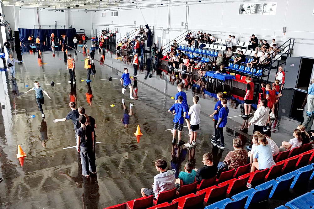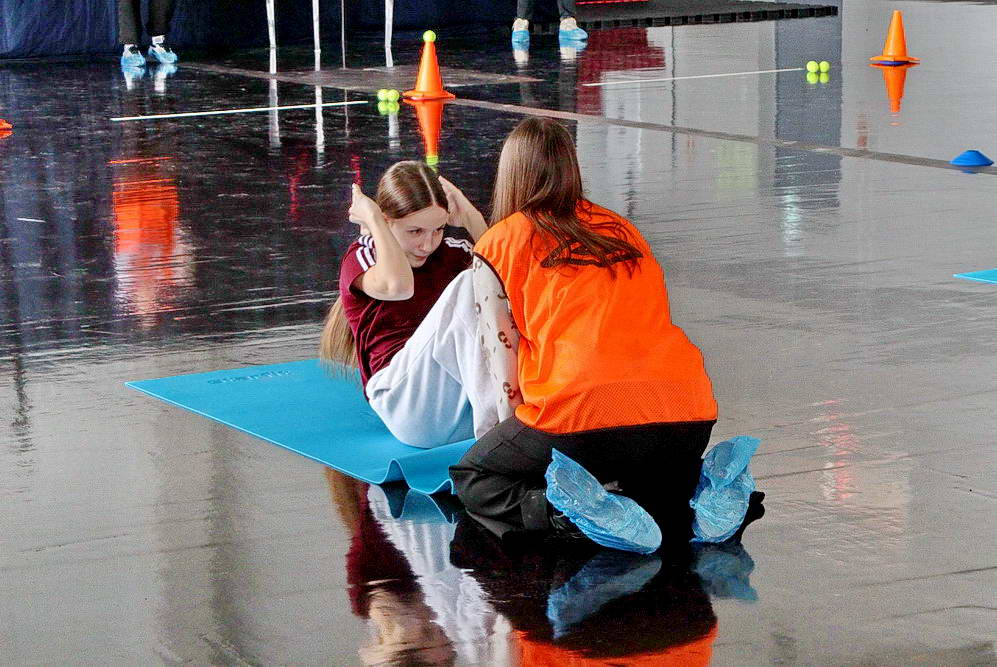 Участникам предстояло не только преодолеть физические преграды, но и адаптироваться к дополнительным сложностям: пол в зале был довольно скользким.