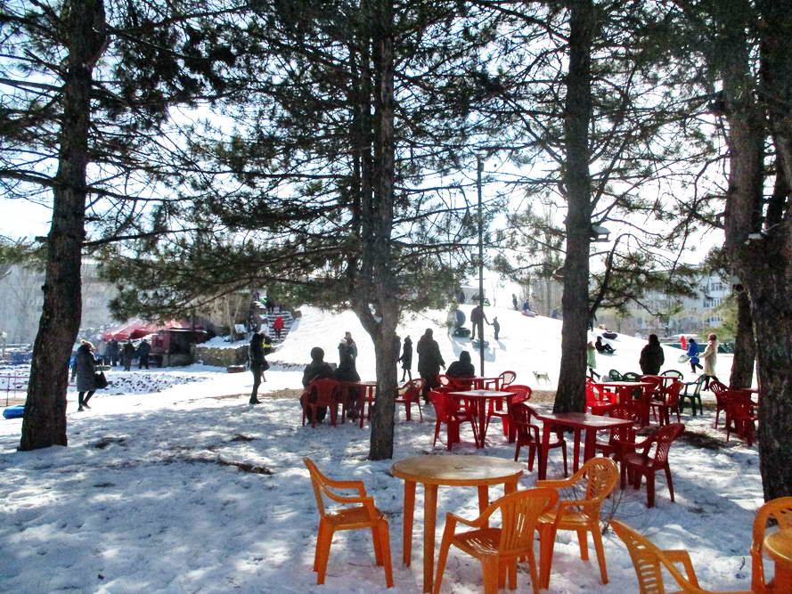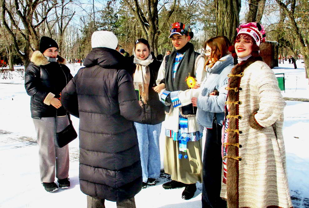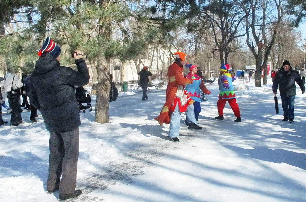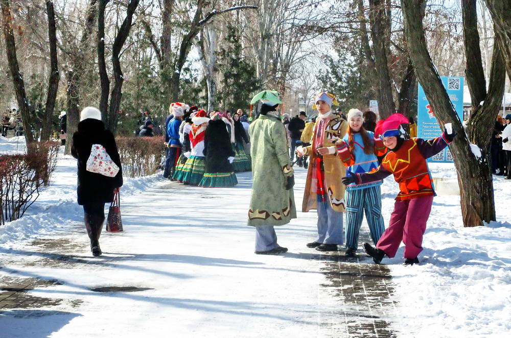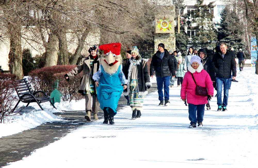 В парке Победы сегодня также развернулось празднование Масленицы. А на площади Победы с утра шла по радиотрансляции музыкальная программа. Несмотря на ограничения, связанные с мерами предосторожности, кое-где на местах все же удалось проводить Масленицу.