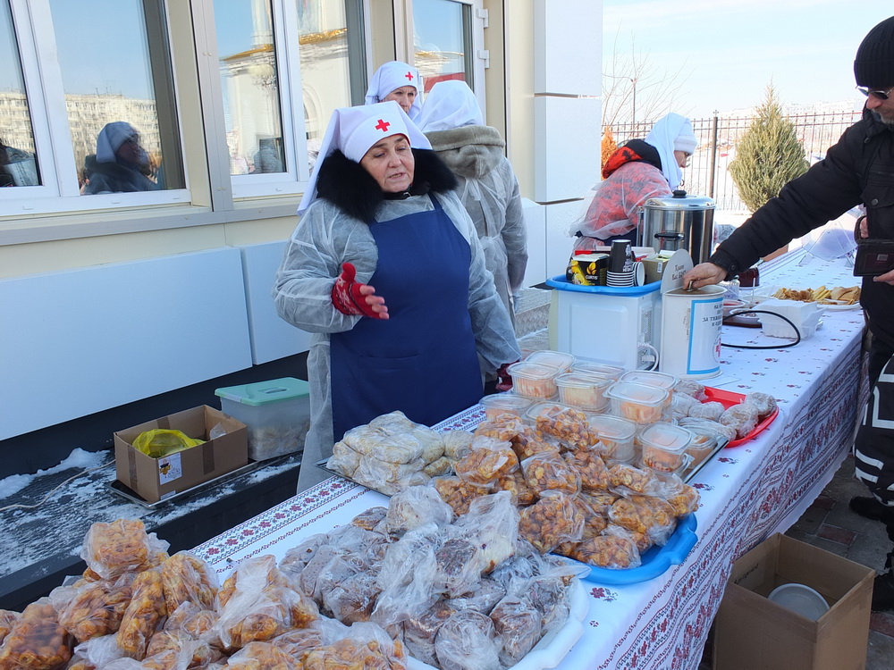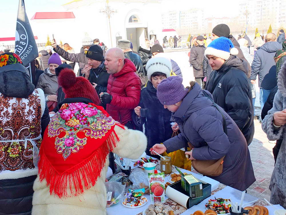 Программа праздника была весьма насыщенной и разнообразной. В самом храме в это время шла служба, и многие посетители, пришедшие на праздник, воспользовались возможностью помолиться. Снежные сугробы на площади стали не только фоном праздника, но и частью активных игр детей и молодежи, которая с радостью принимала участие в уборке снега.