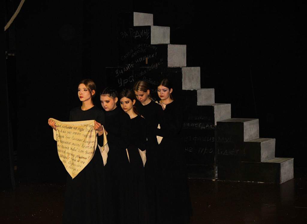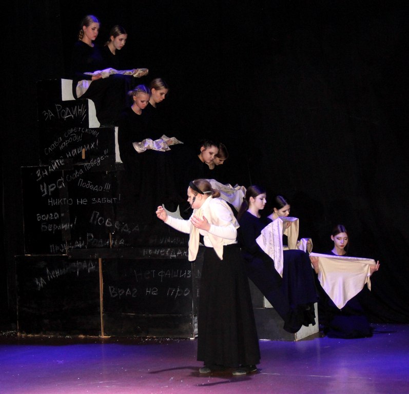 В Детской театральной школе состоялся показ спектакля-памяти «Без названия…», посвящённого 80-летию Победы. Постановку представил учебный театр «Лица», а роли исполнили юные актёры в возрасте от 9 до 15 лет. Ребятам удалось мастерски воплотить на сцене страх смерти и боль утраты, передать материнское горе и детское отчаяние тех, в чьи судьбы ворвалась война.