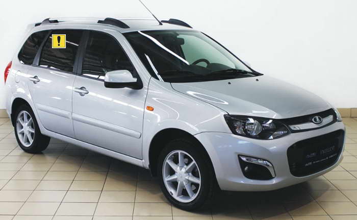 Это знак в виде квадрата желтого цвета (сторона 150 мм) с изображением восклицательного знака черного цвета высотой 110 мм — сзади механических транспортных средств (за исключением тракторов, самоходных машин, мотоциклов и мопедов). За отсутствие этого знака предусмотрено административное наказание в виде административного штрафа в размере 500 рублей.