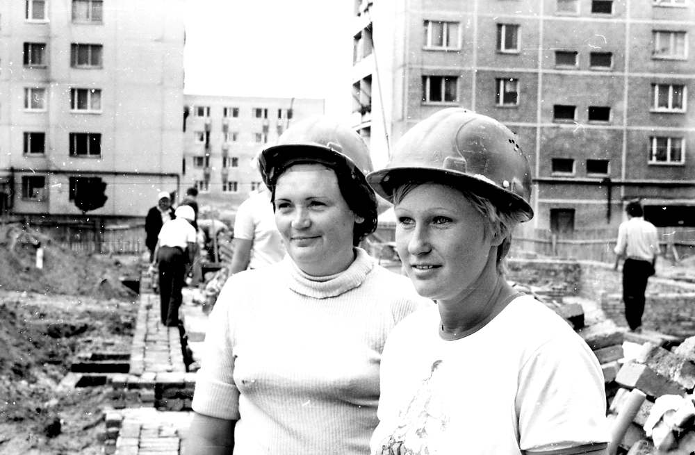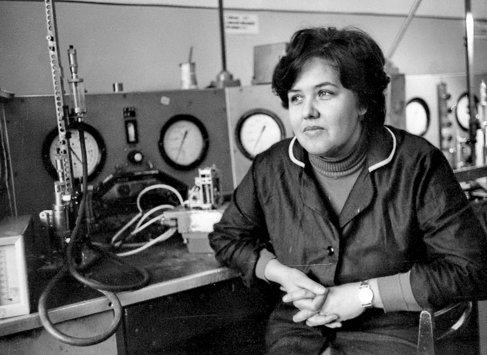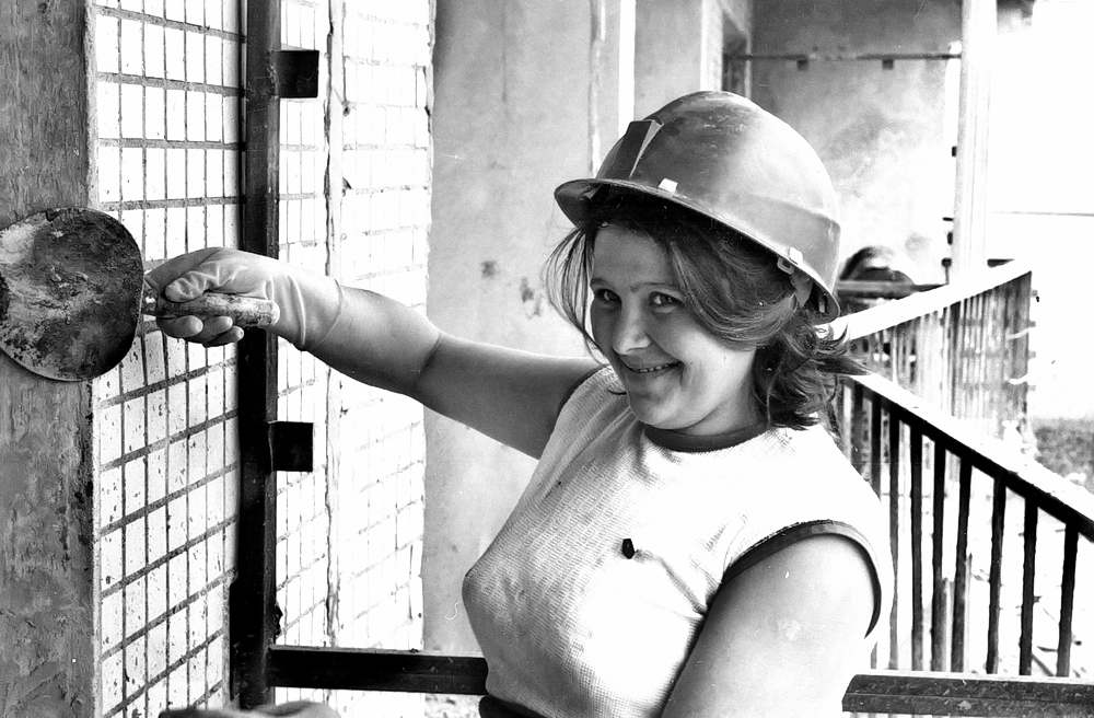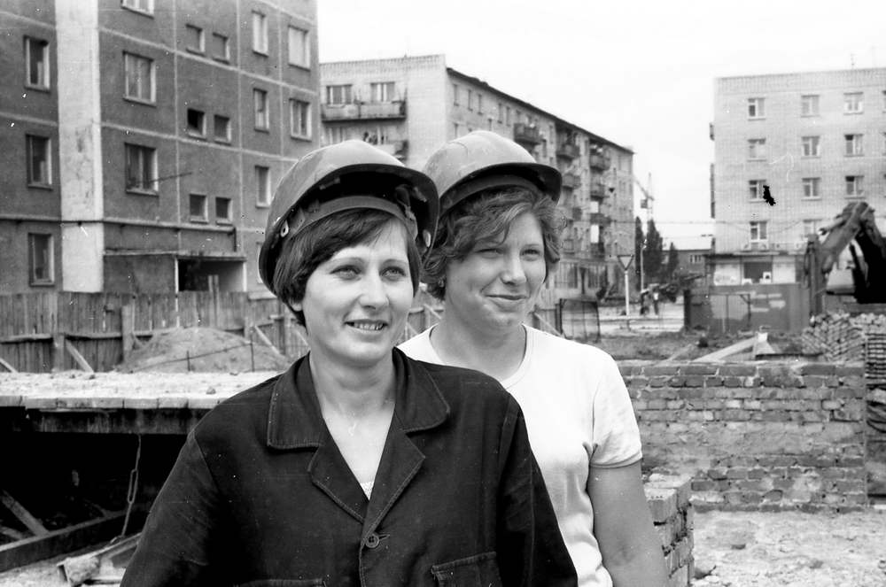 Комсомолки Елена Попова, Софья Симанкович и Евгения ПАРЕЦКАЯ (на снимке) приехали на строительство «Атоммаша» и Волгодонска с Минского камвольного комбината. Посланцы комсомола советской Белоруссии, они ударно трудятся в СМУ-18 «Отделстроя».