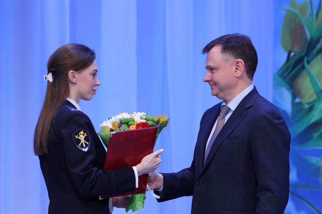 Выступая с трибуны с поздравлениями женщинам с Международным женским днем, глава региона Юрий Слюсарь отдельно остановился на женщинах, которые служат в Вооруженных Силах и наравне с мужчинами участвуют в специальной военной операции, и вручил им региональные награды. В Год Защитника Отечества они тоже стоят на защите интересов Родины. Также губернатор обратился к женам и матерям участников СВО: