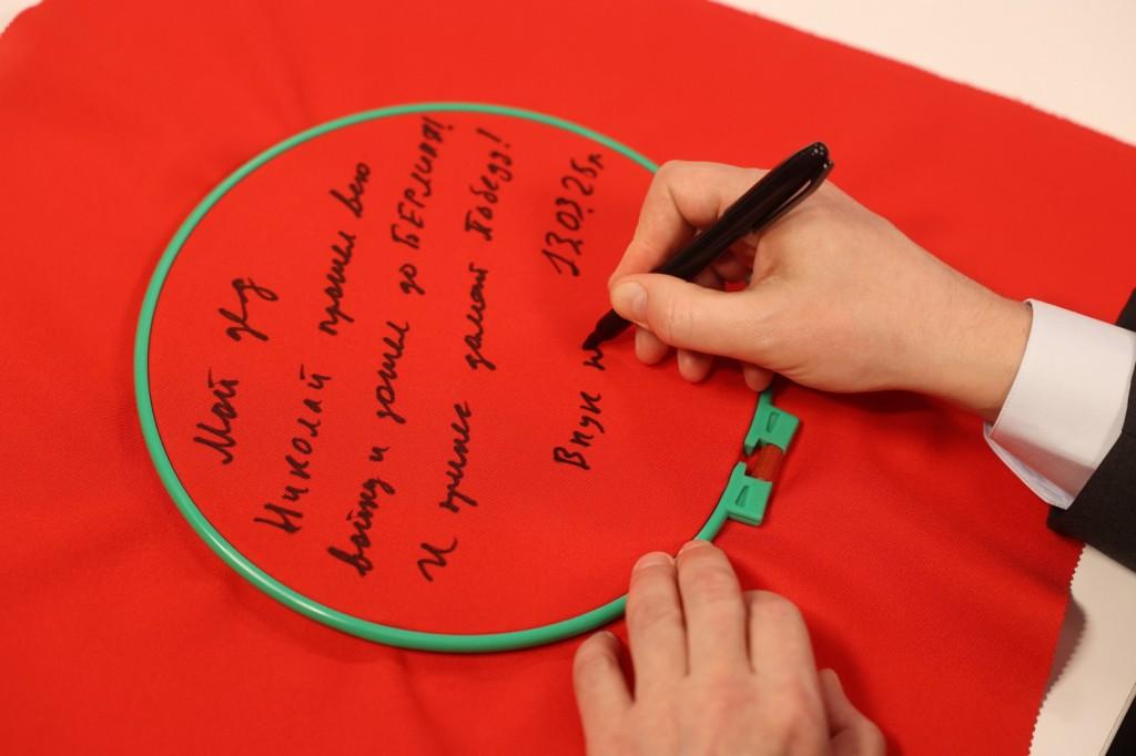 Старт акции в Ростовской области дал 13 марта глава региона Юрий Слюсарь в ростовской школе №60 – одной из самых передовых в донской столице. Юрий Слюсарь первым оставил на алом полотне памятную надпись: «Мой дед Николай прошёл всю войну, дошёл до Берлина и принес домой Победу!». А потом рассказал подросткам из «Движения первых» о своем деде-фронтовике и призвал всех дончан присоединиться к проекту: