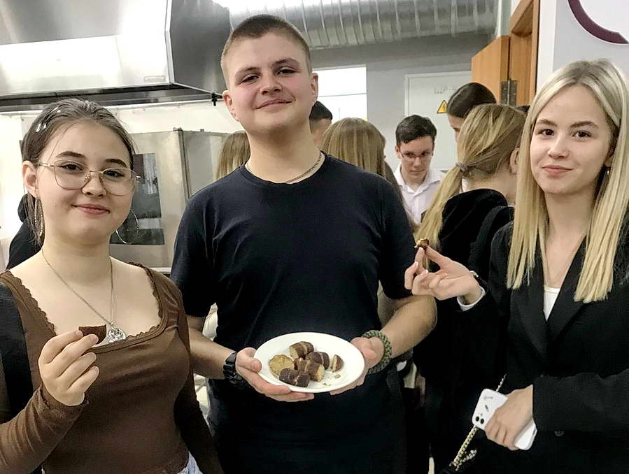Ребята смогли наблюдать за процессом приготовления пищи, увидеть, как функционируют современные технологические линии, и получить представление о сложности и тонкостях этих процессов. Особое внимание было уделено правилам хранения продуктов, соблюдению санитарно-гигиенических норм и правилам ухода за кухонным оборудованием, посудой и инвентарем. Преподаватели демонстрировали правильные методы чистки, дезинфекции и хранения, подчеркивая важность этих процедур для обеспечения безопасности и качества пищевой продукции.