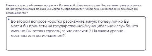 - в анкете укажите информацию о себе, сведения об управленческом опыте, военной службе и трудовой деятельности;