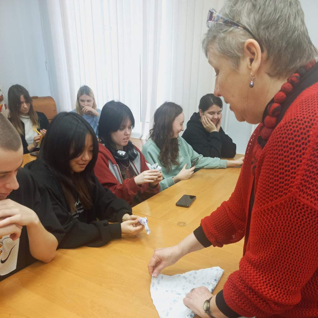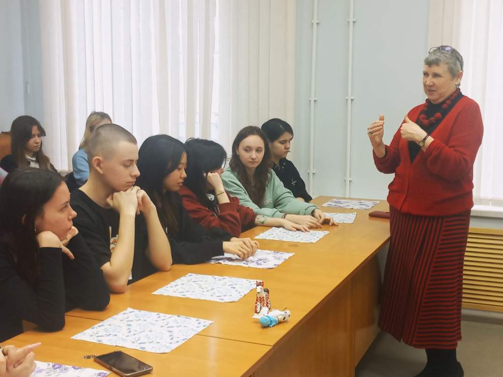 Под руководством лектора студенты смастерили народную игрушку из кусочка ткани, а во время экскурсии по выставочному залу познакомились с творческой биографией первого советского модельера – Надежды Ламановой.