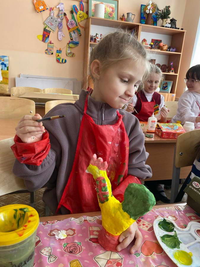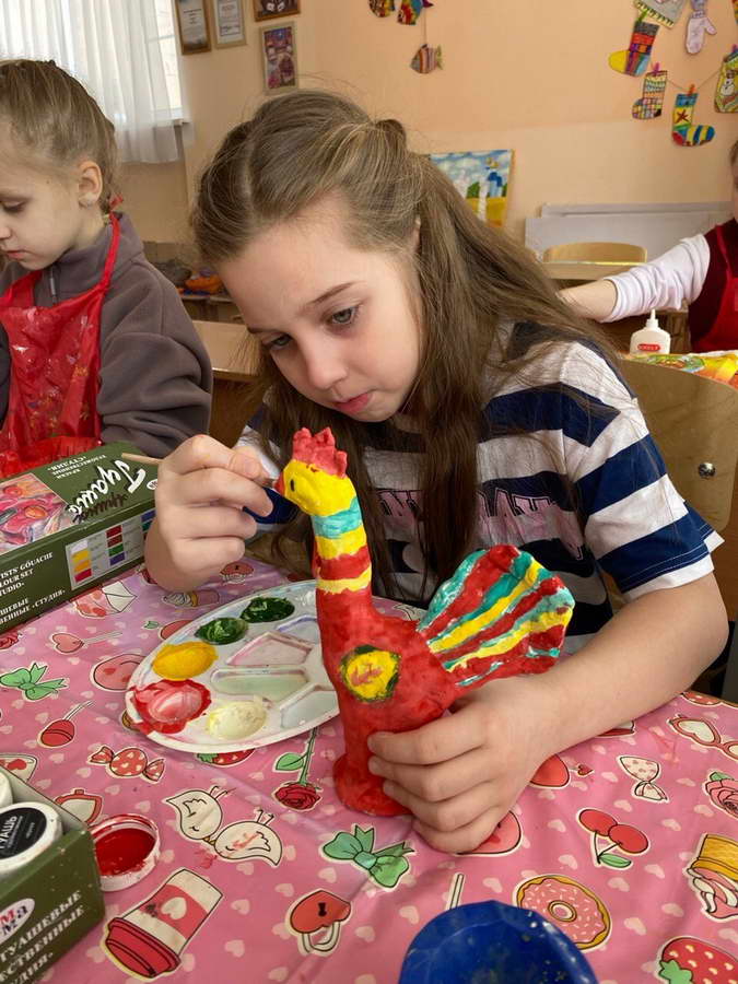 Под чутким руководством Инны Геннадьевны дети вылепливают из глины свои собственные игрушки, почувствовав на себе удивительную пластичность материала, труд и кропотливость работы. А затем, с помощью ярких красок, они расписывают свои творения, привнося в них частичку своей души, создавая маленькие, неповторимые произведения искусства, продолжая традиции многих поколений филимоновских мастериц.