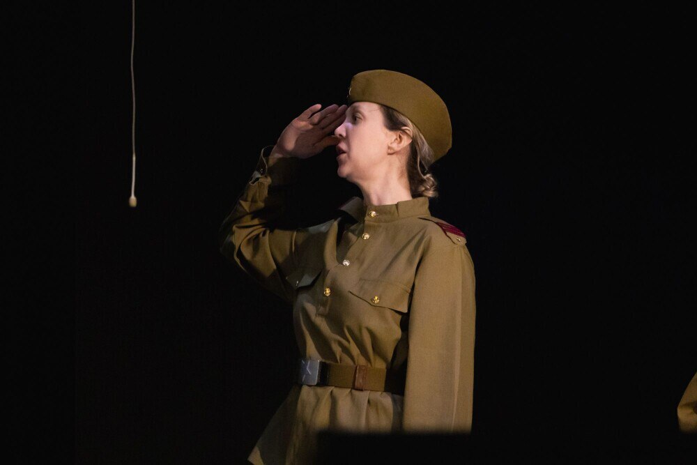 Режиссер добавила, что спектакль посвящается женщине на войне. Женщина и война — понятия несовместимые! Если «для мужика война эта, как зайцу курево», так для женщины, призванной давать жизнь, невероятный подвиг нести все тяготы войны, отнимать жизнь, видеть кровь и смерть.