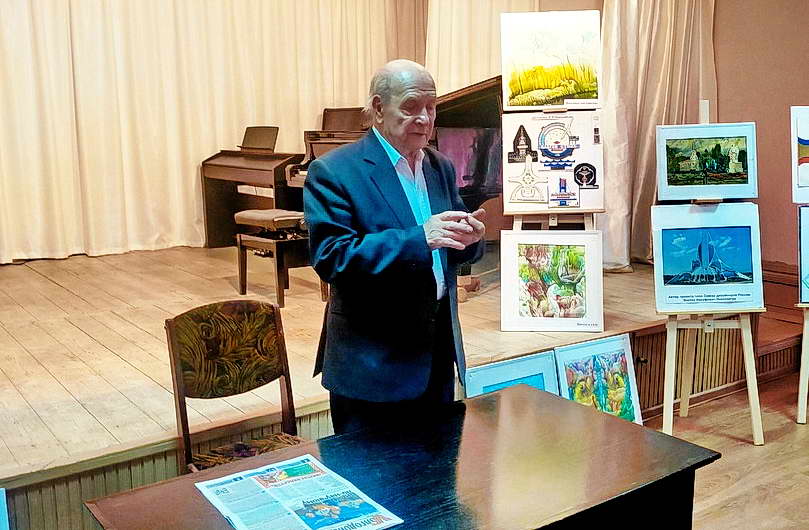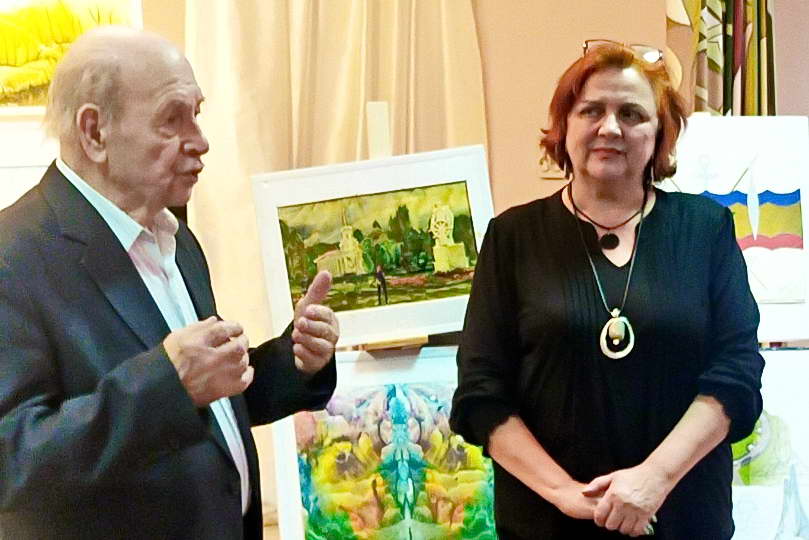Его рассказ был наполнен яркими деталями, анекдотами и увлекательными историями, делающими рассказ живым и увлекательным. Особое внимание было уделено процессу создания картин, выполненных в техниках «акварель» и «аквапатия». Виктор Иосифович демонстрировал не только техническое мастерство, но и глубину своего художественного видения, способность передать на холсте тончайшие нюансы цвета, света и тени, воссоздать настроение и эмоции.