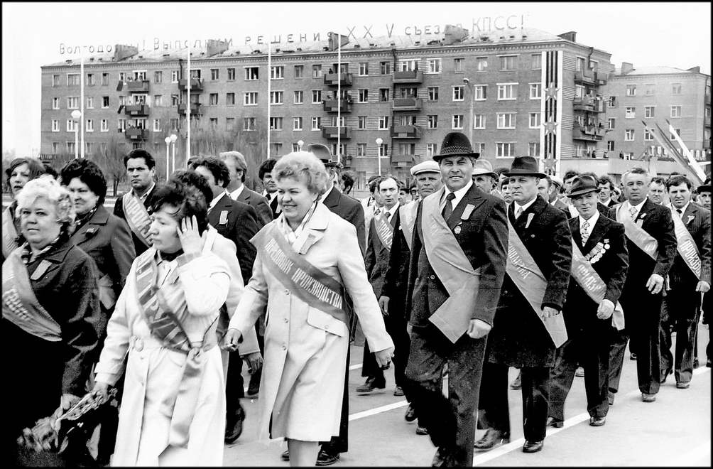 Праздничную колонну атоммашевцев возглавляют передовики производства, победители социалистического соревнования в честь 110-й годовщины со дня рождения Владимира Ильича Ленина, наставники объединения, лучшие по профессии. Среди них кавалер орденов Ленина и Трудового Красного Знамени, депутат областного Совета Владимир Матвеевич Захаров. Коммунисты его бригады первыми на «Атоммаше» рапортовали о выполнении пятилетнего плана. В колонне атоммашевцев — кавалер ордена Трудового Красного Знамени, ударник коммунистического труда, ветеран Великой Отечественной войны Николай Михайлович Маликов, бригадир, коммунист Николай Подольский. В минувшем году его коллектив в течение трех кварталов был лучшим среди бригад Министерства энергетического машиностроения СССР.