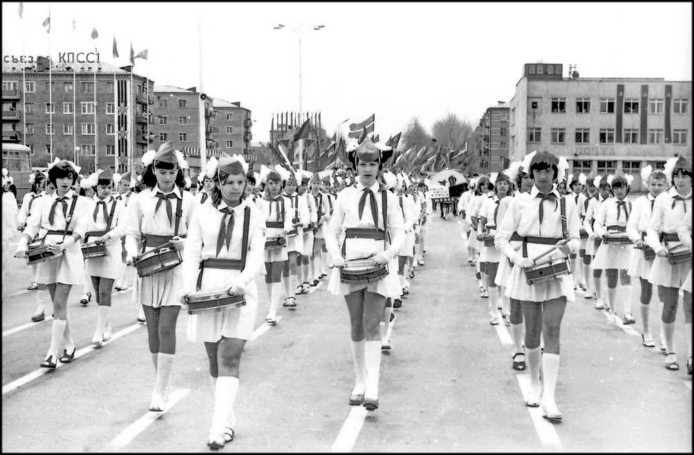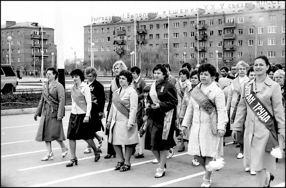 По традиции первыми на центральную площадь города, площадь Победы, вступили передовики производства, ветераны партии и труда, наставники. В руках лучших представителей рабочей гвардии города — наши знамена: знамя города Волгодонска, знамя Совета Министров РСФ СР и ВЦСПС и знамя обкома КПСС, облисполкома, облсовпрофа и обкома ВЛКСМ, которыми город награжден за победу во Всероссийском и областном социалистическом соревновании.