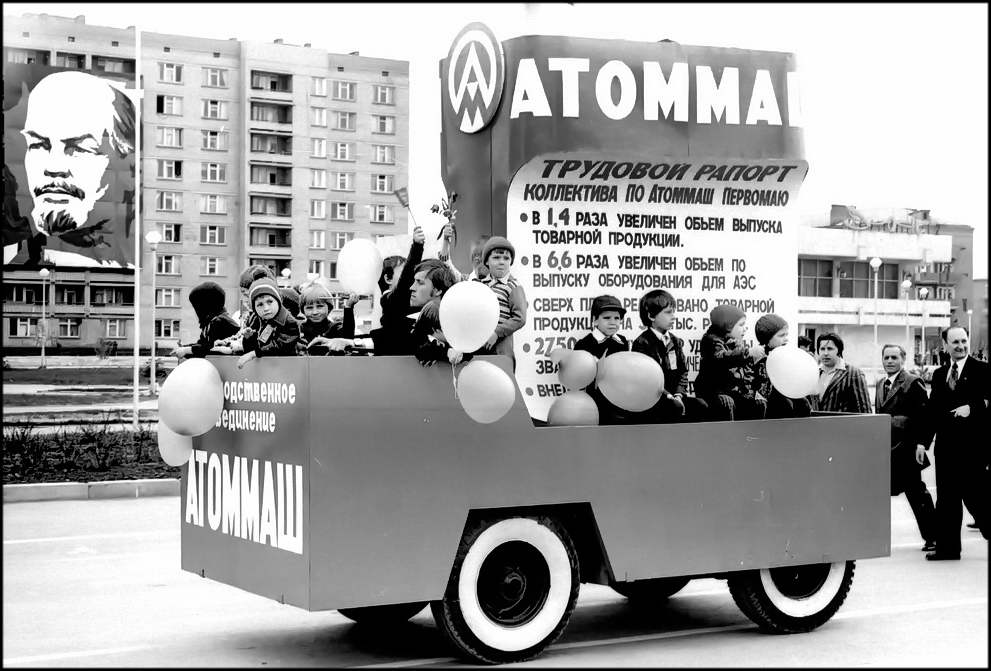 В колонне «Атоммаша» идут люди 35 национальностей. Это наглядно показывает, что «Атоммаш» — детище всей страны.