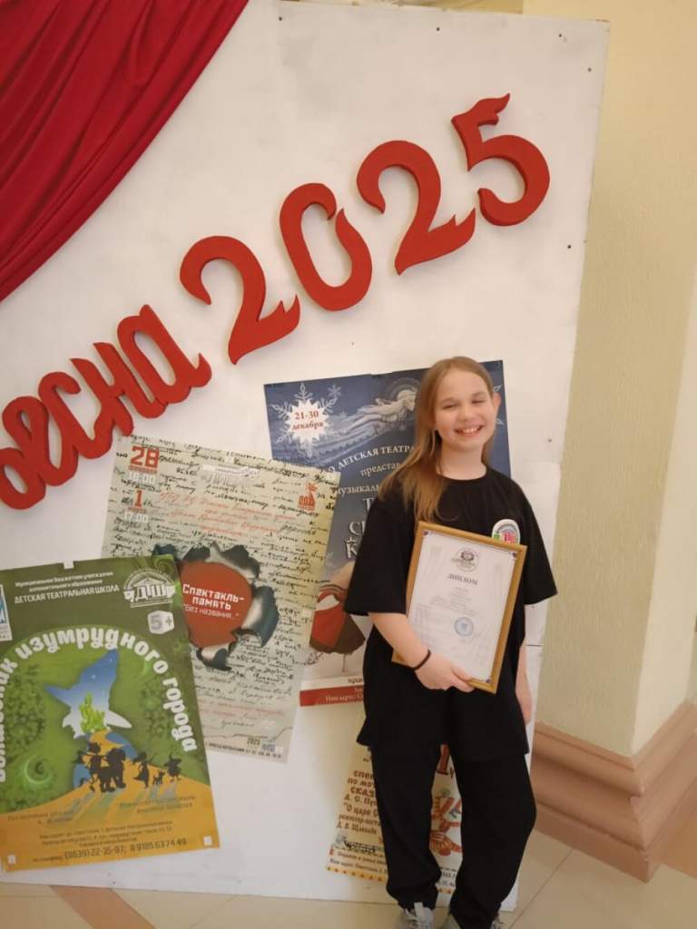 Воспитанница Детской театральной школы Татьяна Дранко (преподаватель Татьяна Воловикова) удостоена гран-при в номинации «Актерская песня».